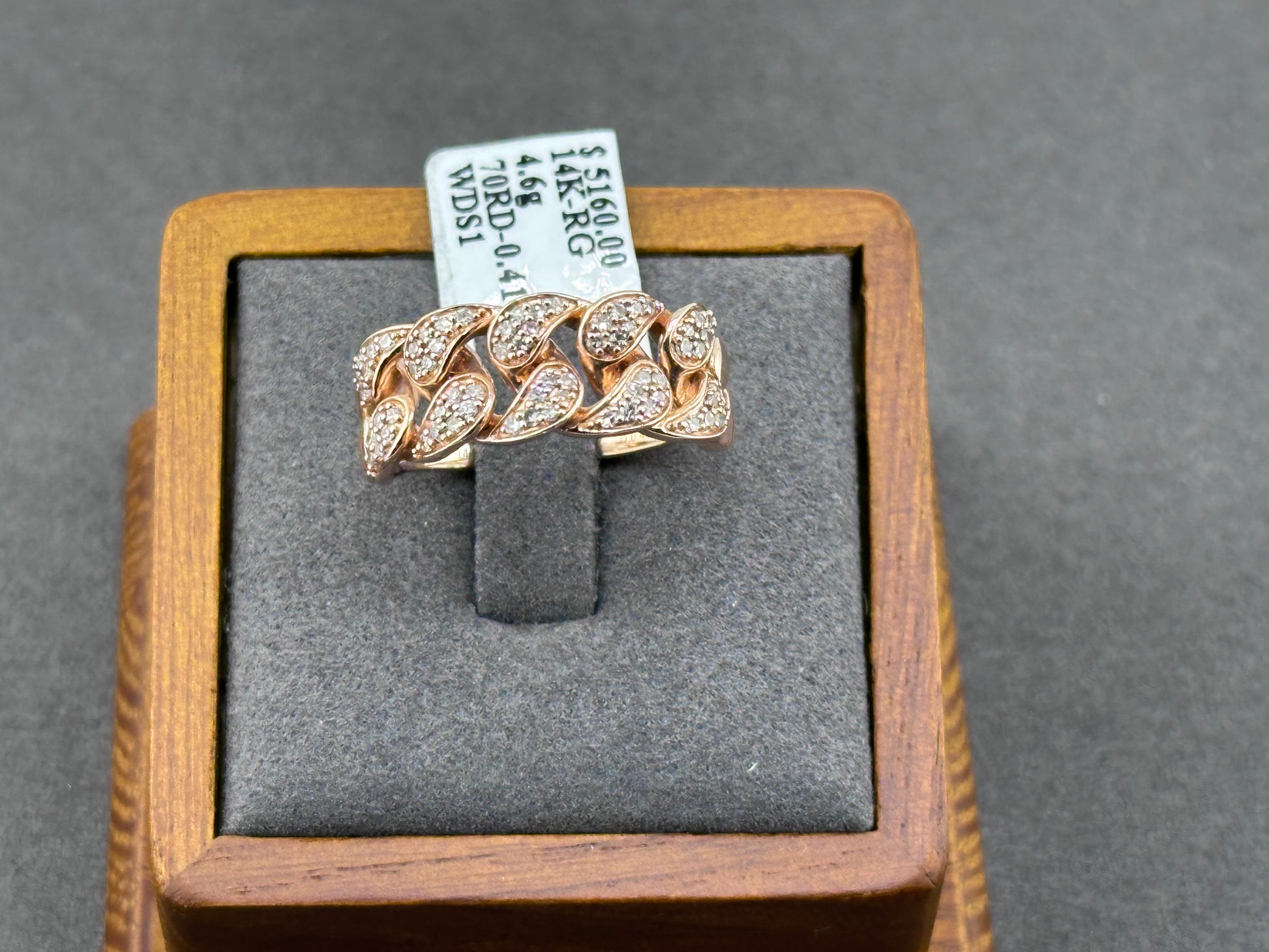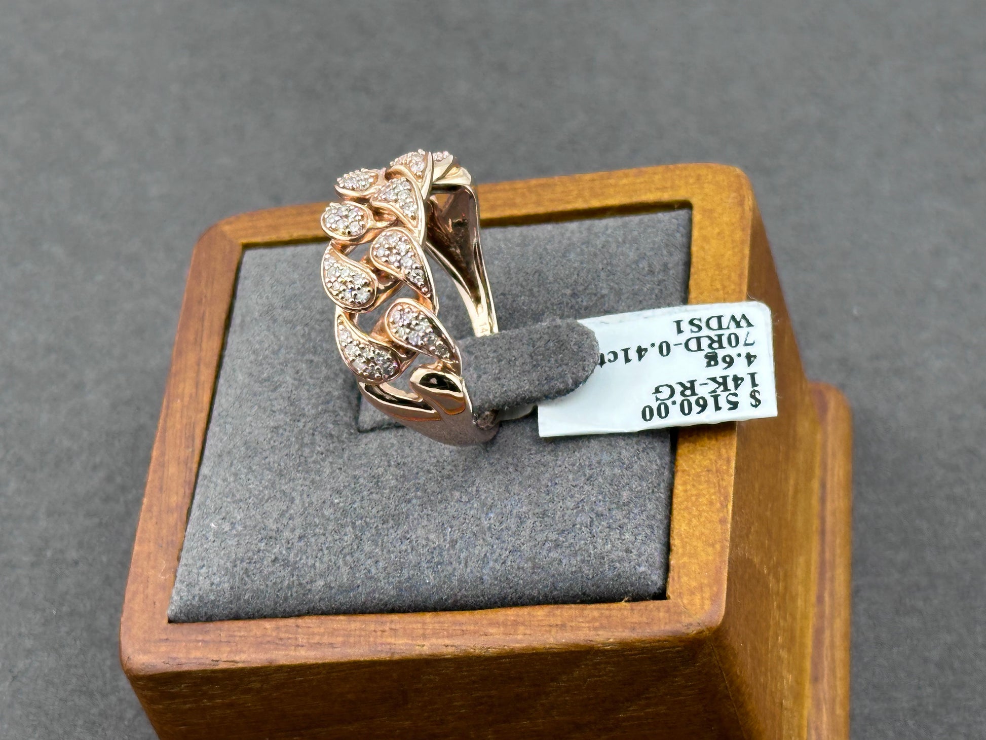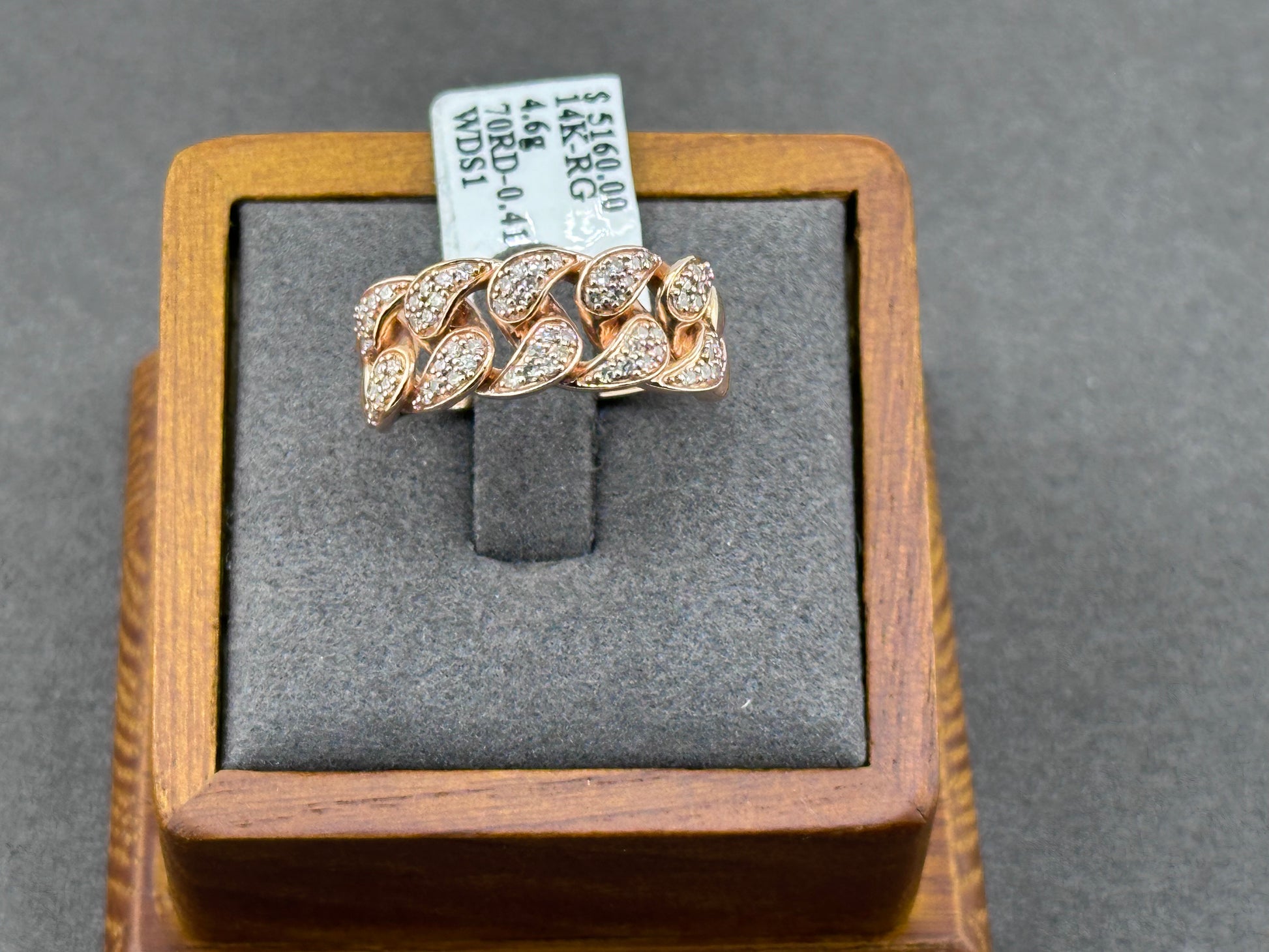 .41ct G SI 14K Rose Gold Diamond Cuban Men's Ring Size 10